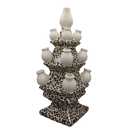 Voeg een vleugje wildernis toe aan je interieur met deze opvallende Delfts blauwe tulpenvaas met pantermotief. Deze vaas is niet zomaar een blikvanger; het is het absolute hoogtepunt van pracht en praal in elk huis. Met zijn drie lagen en verschillende tuitjes biedt deze vaas een perfecte plek om bloemen te rangschikken. Met maar liefst 13 aparte openingen is het een waar kunstwerk in functionaliteit en design. Met een hoogte van 40 centimeter domineert deze vaas elke ruimte met zijn unieke uitstraling.
